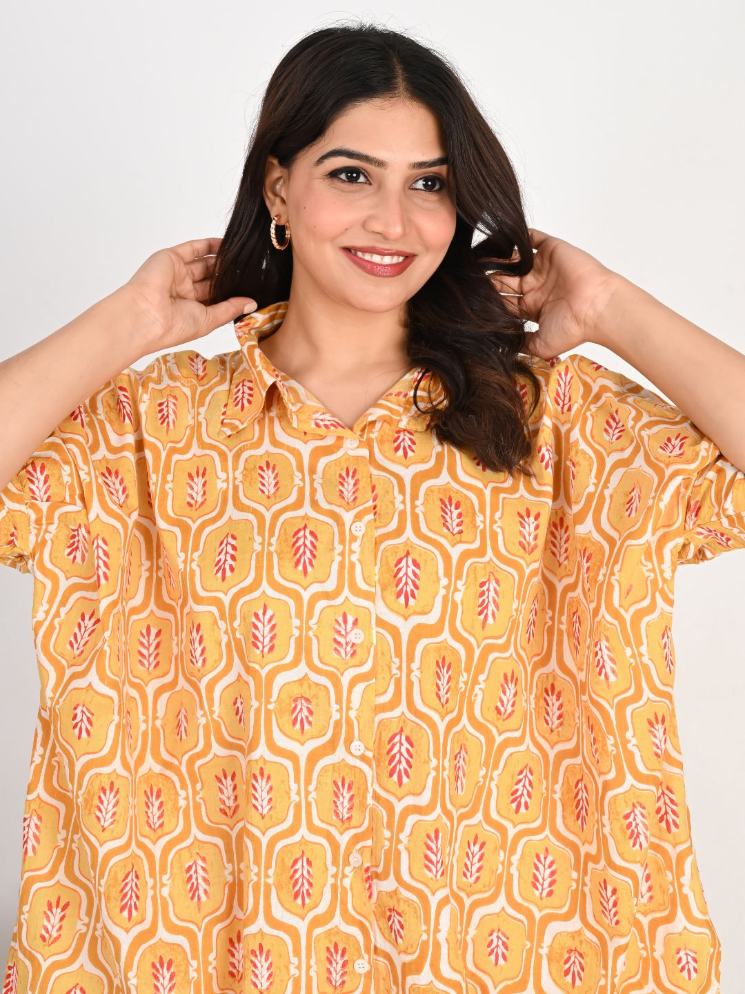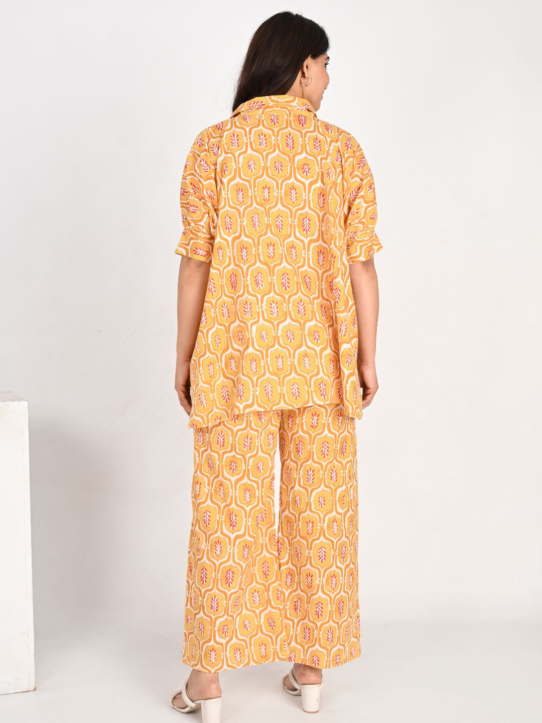 Yellow Geometric Printed Shirt Collar Co-ords Set